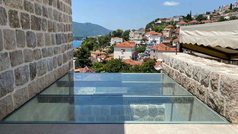 55 m2 with unobstructed 360° views of UNESCO protected world heritage site – the Bay of Kotor on one side, surrounding mountains and the panorama of the Old Town on the other.
